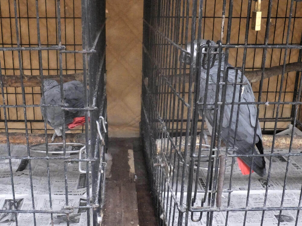 ここの鳥たちは人懐っこく、自分から人間の腕や頭にとまってくれますが、ゲージ前で売られている餌を持って入ると、その効果は絶大です。 |
