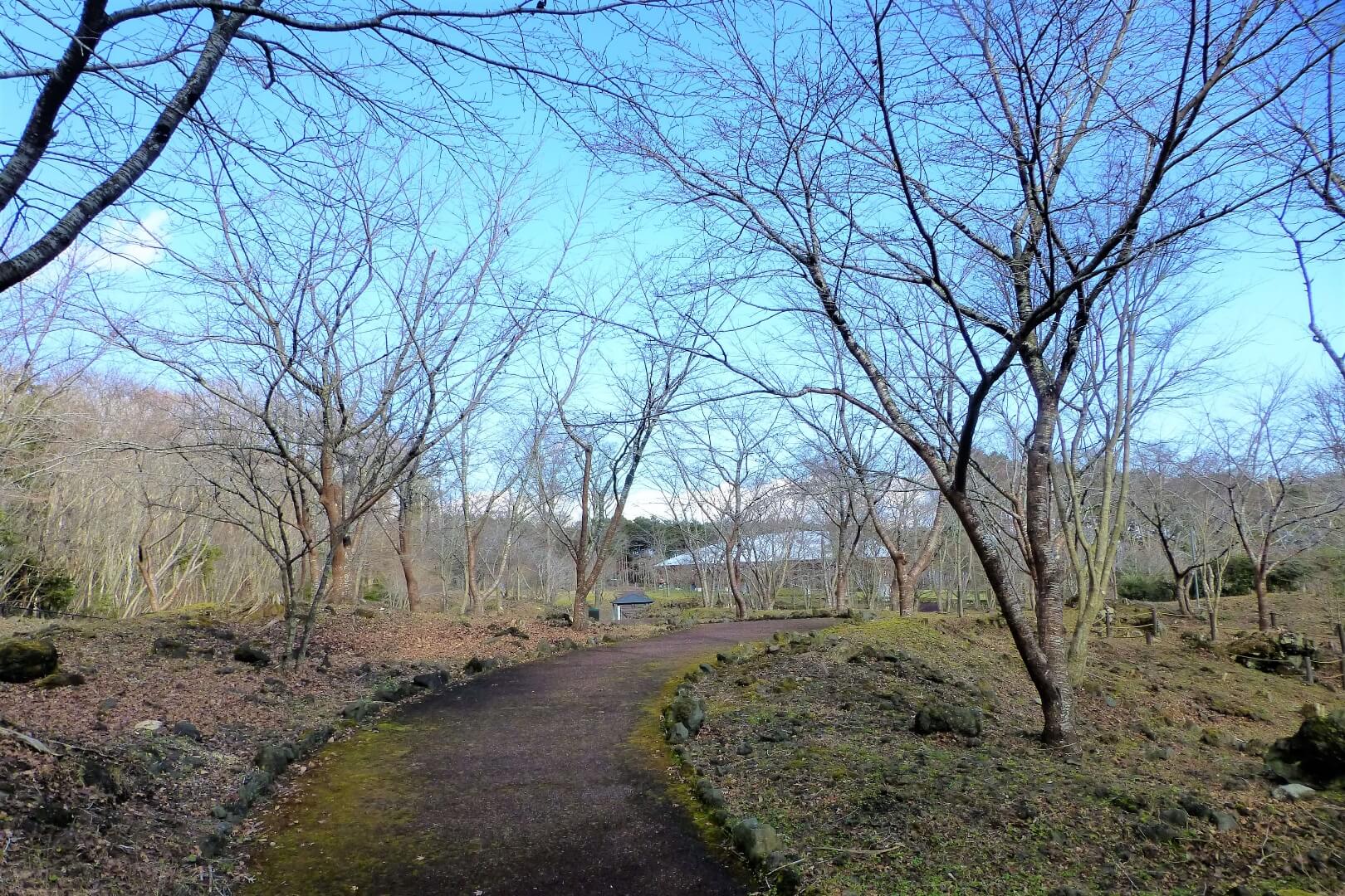 堀金北溶岩樹型「富士山樹空の森」は約1,400年前の富士山噴火の際に流れ出た印野丸尾溶岩流の上にできています。 |